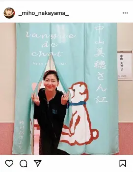 中山美穂 “大好きな先輩”からもらった暖簾からひょっこり ファン「世界一暖簾似合う」「かわいい」