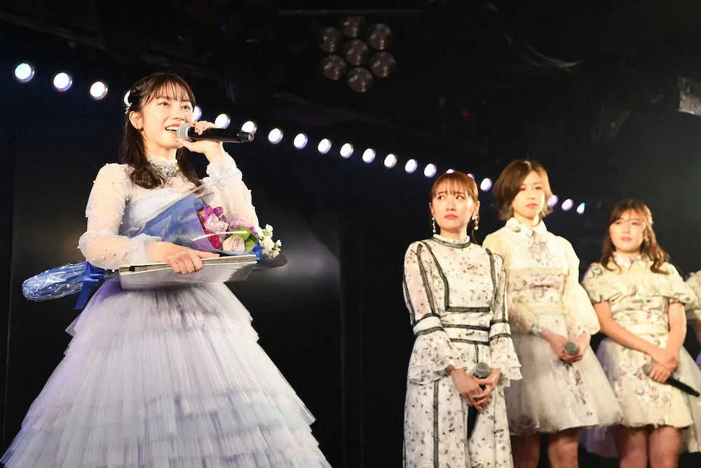 AKB48の横山由依(29)が9日、東京・秋葉原のAKB48劇場で卒業公演を行った。先月27日にはパシフィコ横浜で卒業コンサートを実施。この日は「大声ダイヤモンド」など全21曲を歌唱し、本拠地に別れを告げた。「本当にあっという間。卒業する実感がないですし、24時間365日、AKBでいられて良かったです」とほほ笑んだ。アンコールでは淡い紫色のドレス姿を披露。初代総監督を務めたOGの高橋みなみ(30)もサプライズ登場し旅立ちを後押しした。