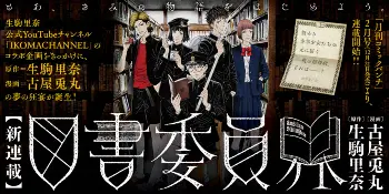 「帝一の國」などを世に送り出し、生駒自身も大ファンと公言する古屋兎丸氏との架空のコラボレーション作品として誕生した「図書委員界」。当時は「オリジナル漫画のキャラクターに変身」と題し、生駒が古屋兎丸氏考案のキャラクターに扮する内容の動画であったが、そのコラボレーションをきっかけに「図書委員界」が「月刊コミックバンチ」に連載されることになった。