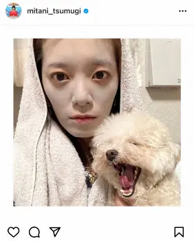 「シュールすぎて自分で大笑い。深夜、泥パックをしている私の膝に足袋さんがわざわざ座って大あくびの図です」と顔が白くなった三谷アナの前であくびをする愛犬との2ショットを投稿した。「この時間に投稿するとお化けみたいだなと思ってちょっと遅めの投稿を…見れば見るほどじわじわきます。笑笑」とつづった。