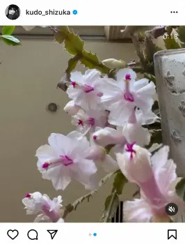 工藤は「正面から見るより、下から見上げた方が美人さんのシャコバサボテン」と紹介し、鉢に植えられ、葉が垂れ下がった独特な形が特徴的なシャコバサボテンを披露。さらに、「咲くたびに、こうして花の下に寝転んで見るのです」「皆さまにうちの美人さんを紹介します!」とつづり、下のアングルからピンクの花びらを捉えた動画も公開した。