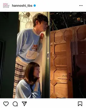 同アカウントは「仲良し夫婦」と記し、作中に登場する猫の「おもち」の顔写真があしらわれたルームウェアに身を包みメガネをかけた坂口と、坂口の足元でお揃いのブルーのルームウェアを着て笑顔を見せる清野の姿を公開。これに対し、「#撮影の合間」「#仲良し2人で」「#モニターチェック」とハッシュタグをつけ説明した。