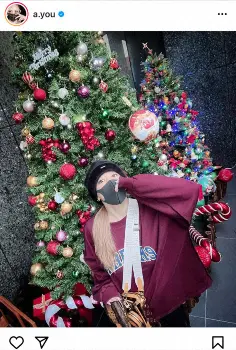 浜崎あゆみ 大きなクリスマスツリーの前で“あゆ流”冬コーデ「極暖上下仕込むえぶりでい」
