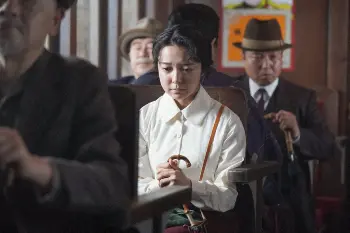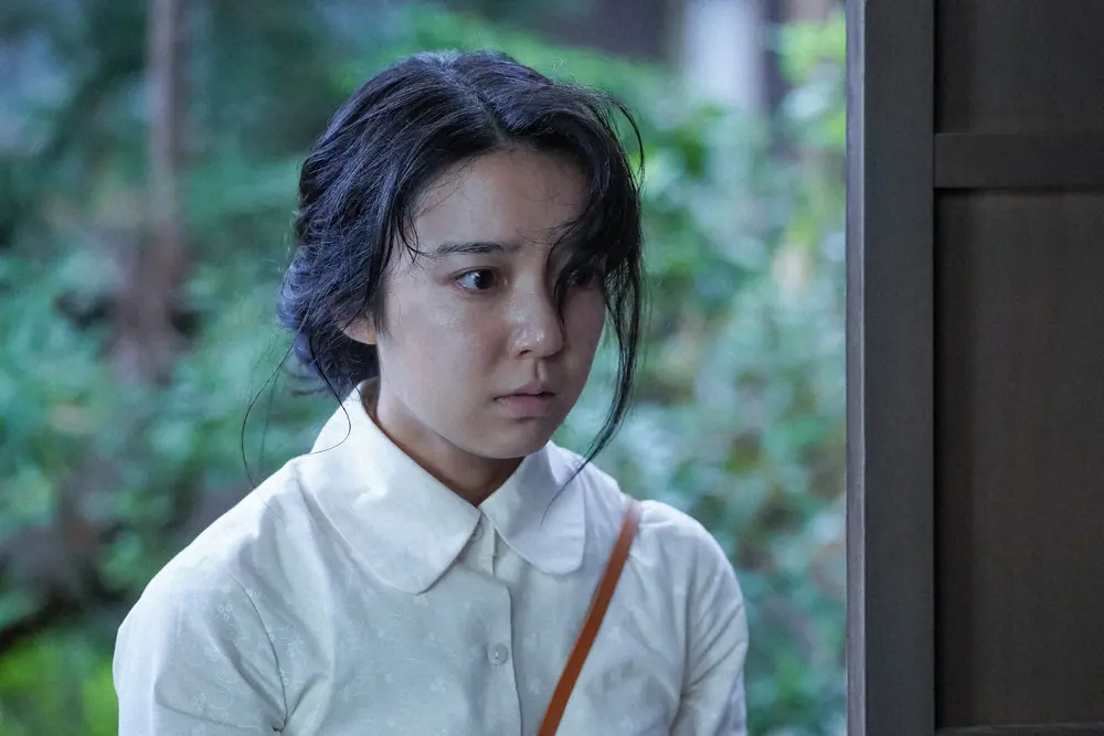 連続テレビ小説「カムカムエヴリバディ」第38話。雉真家・表にて。あることに驚く安子(上白石萌音)(C)NHK