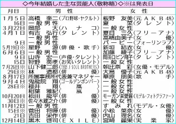 今年目立った「お隣さま婚」。4月に結婚した有吉弘行(47)と元アナウンサーの夏目三久さん(37)は、交際を始めた時期に有吉が夏目さんと同じ敷地内のマンションにお引っ越し。5月に結婚を発表した星野源(40)と新垣結衣(33)は、同じマンションの別の部屋に住んでいたことが話題になった。星野はラジオ番組で「マジでたまたま」と“釈明”。その真偽はともかく「お隣さま婚」は交際を完全に秘密にできるメリットがある。星野と新垣も、交際すら報じられないままの結婚発表だ。