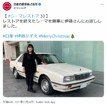 また、この日日産も公式ツイッターを更新。「レストアを終えたシーマを無事に伊藤さんにお返ししました」と報告すると、伊藤と「シーマ」の2ショットをアップした。