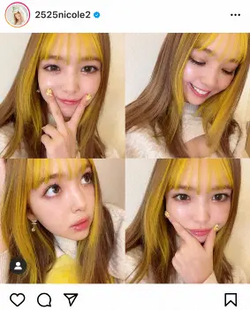 藤田は「年末年始限定イメチェンしてきた」とし「私の大好きなピカチュウカラー」前髪とインナーが黄色になった新ヘアを披露。「それと寅年なので来年年女でもあるからピッタリなイエローだね」と満足げにつづり「ネイルもポケモンに」と4分割にした写真を投稿した。