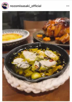 佐々木希 「焦げた。笑」チキン丸焼きと牡蠣アヒージョ…クリスマスディナー公開に「息子ちゃん喜ぶね」