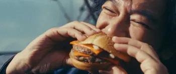 バーガーを食べるシーンでは、カメラからキレイに見える持ち方をスタッフと確認。「力を入れすぎるとダメだな。バーガーの立場になって考えれば“顔”がゆがむのは嫌だよね」と堺らしい優しさを見せていた。
