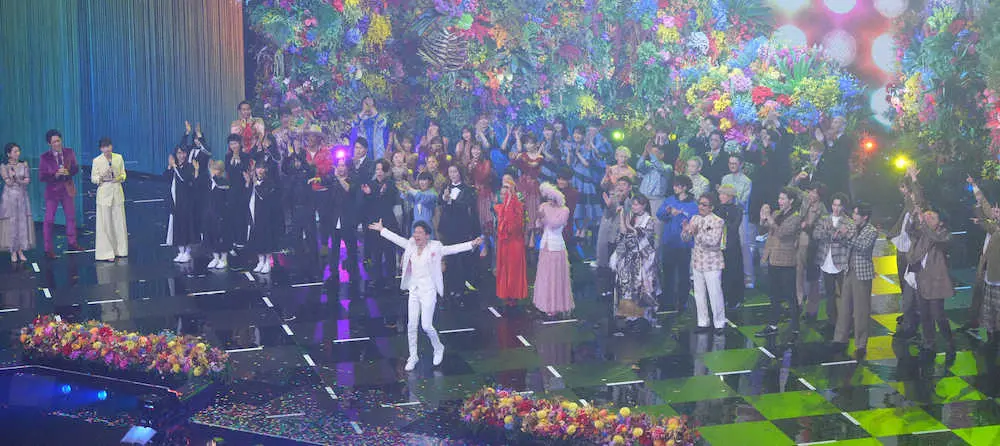 キレキレのダンスも健在。ステージ上のアーティストも手拍子で盛り上げた。司会の大泉洋は「盛り上がりましたね、みなさん!」と大興奮だった。今年はファンクラブ開設から50年。節目の年を締めくくった。