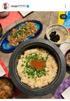 「おせち大改造レシピ 鯛、いくらは鯛めしに お煮しめ、筑前煮はお雑煮に」と記すと、いくらがのった鯛めしや、しいたけやゴボウなどが入った雑煮などが並ぶ食卓を披露。ハッシュタグでは「mychef」「お正月太り」と添えた。
