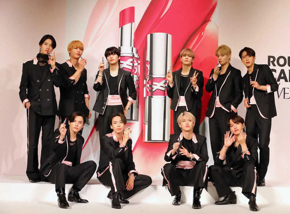男性11人組グループ「JO1」が化粧品ブランド「イヴ・サンローラン・ボーテ」のブランドアンバサダーに就任し、5日に都内で発表会見が開かれた。