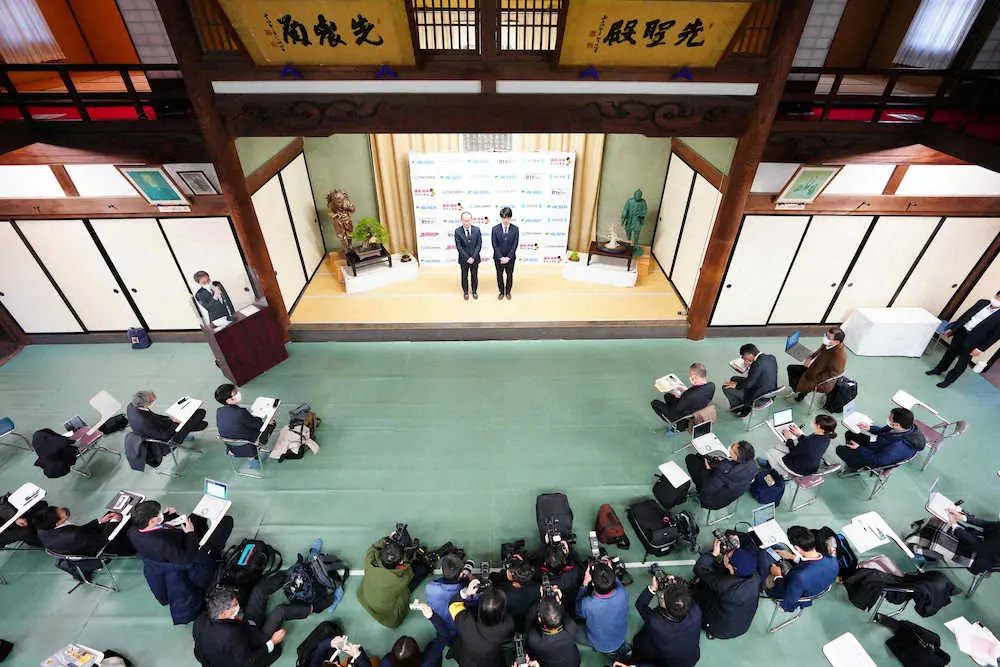 渡辺王将「責任感と緊張感」、藤井竜王「王将戦を常に意識」王将戦掛川対局前日会見