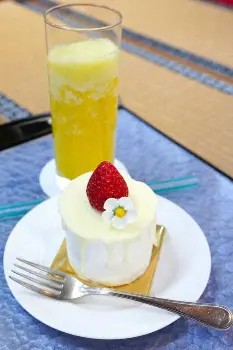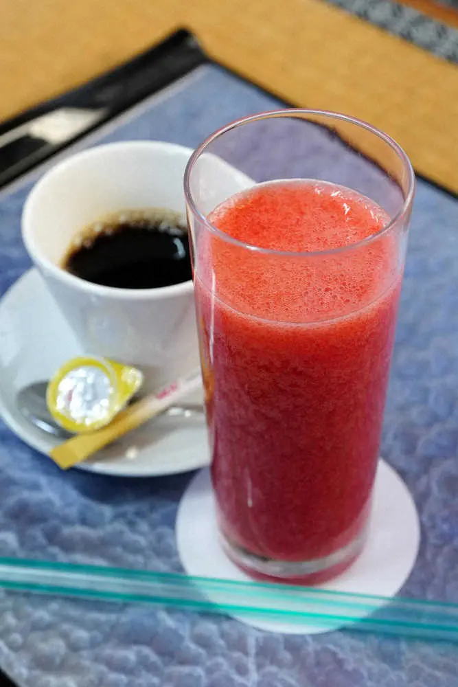 渡辺はいちごのフレッシュジュースとホットコーヒー、藤井はパイナップルのフレッシュジュースと「掛川紅ほっぺのショートケーキ」を注文。藤井がチョイスした「掛川紅ほっぺのショートケーキ」は、今回のために1カ月の試行錯誤を重ねて製作された新商品。掛川産のいちごを使って見た目も可愛らしく、甘みと酸味のバランスが特徴の逸品となっている。