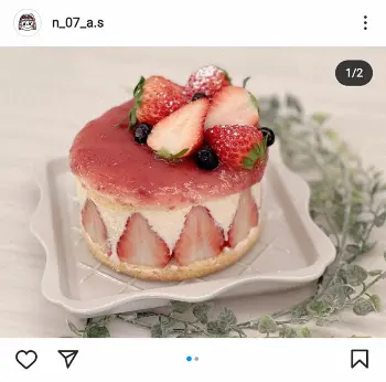 この日は綺麗にイチゴがデコレーションされたケーキを披露し「フレジェ ピューレが無かったのでジャムで代用しました」と紹介していた。