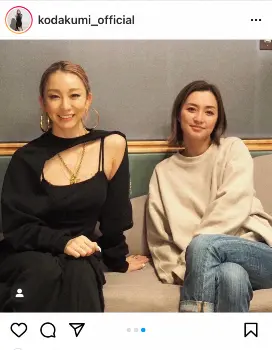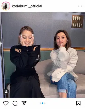 歌手の倖田來未(39)が15日、自身のインスタグラムを更新。「Do As Infinity」の伴都美子(43)とのバッタリ再会した際の様子を公開した。