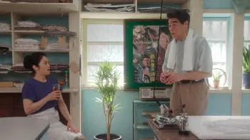 連続テレビ小説「カムカムエヴリバディ」第12週は「1963-1964」。竹村クリーニング店にて。ラジオを聞く平助(村田雄浩)と和子(濱田マリ・左)(C)NHK