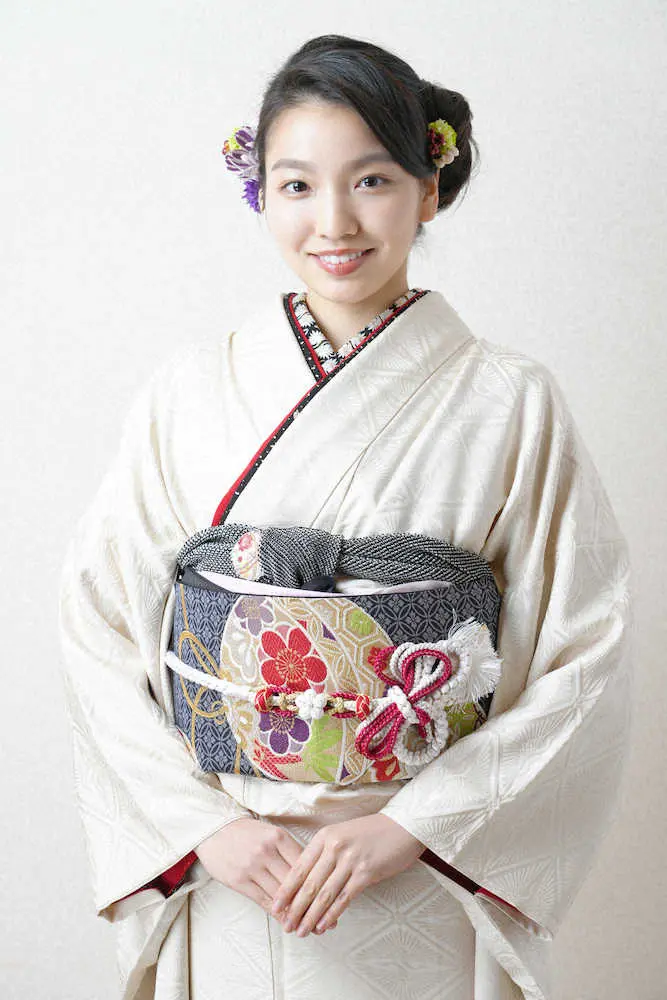 着物姿の属安紀奈さん(撮影・会津智海)