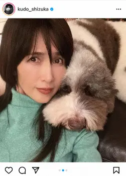 歌手の工藤静香(51)が18日、自身の公式インスタグラムを更新し、頭の上に愛犬のエトワール君が顔を乗せた愛らしい姿を披露した。