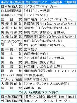 2021年(第76回)毎日映画コンクール各賞決定 ( 2022年1月19日 )