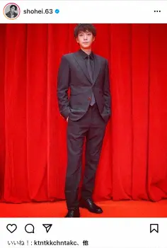 この投稿の2時間前には「昨日は映画嘘喰いのジャパンプレミアでした。 #嘘喰い #ジャパンプレミア #2/11公開 @louisvuitton」とつづり、赤いカーテンをバックに、よーく見るとLouisVuittonのお洒落なマークが散りばめられたスーツに、ネクタイを含む全身黒コーデの決まった姿の写真を投稿した。