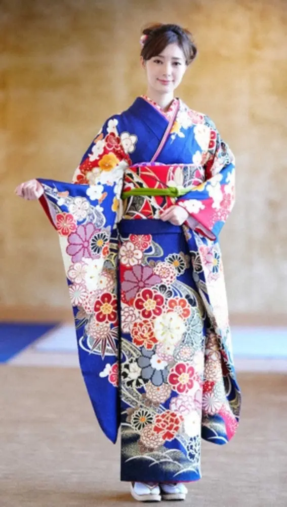 晴れ着姿を披露する宮本茉由(撮影・小海途 良幹)