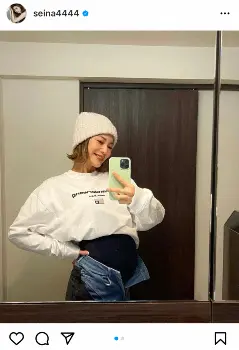 「着れる服がなくなったので…ノアの服借りる事が多くなった。てかうっすら腹帯見えてるしwまた更に大きくなったでしょ」とつづり、ゆったりしたトップスにデニムを合わせたスタイルで、ふっくらとしたお腹を公開した。