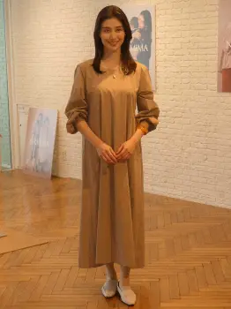 出産や子育ての実経験を踏まえ、マタニティウエアとしての機能もあるワンピースなどを手掛けた。「妊娠中や授乳中でも女として楽しめる上質な洋服を目指しました」と説明。外出先でも楽に授乳ができる仕様となっており「育児で動いてもシワができないように生地にはこだわった。今後は夏物も作ってみたい」と目を輝かせた。