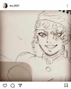 眞鍋はこれまでも主人公の竈門炭治郎(かまど・たんじろう)らのイラストを披露しているが、現在放送の「遊郭編」を見たようで「うわあああ音柱カッコよかった…やばいどんどん推しが増えていく こどもとのお絵描きタイムに気がついたららくがきしてた はじめて音柱描いてみました」とつづった。