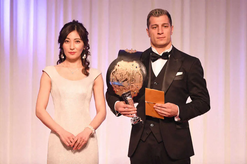 グラビアタレントの熊田曜子(39)が26日、都内で開かれた格闘技イベント「K―1」の年間表彰式「K―1アウォーズ2021」でプレゼンターを務めた。「ベストKO賞」に選ばれたマハムード・サッタリ選手にトロフィーを手渡した。