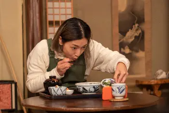 第1回(25日)&第2回(26日)の「秋田編」に続き、第3回(27日)&第4回(28日)は「愛媛・高知編」。“旅屋”を始めて半年が経った“おかえり”ことタレントの丘えりか(安藤)。ある日、打ち切りになったレギュラー旅番組「ちょびっ旅」のスポンサー、江戸ソースの会長・江田悦子(真野響子)から、所属事務所「よろずやプロ」の萬鉄壁社長(武田鉄矢)とともに自宅に呼ばれる。悦子は高知県の梼原に行き、紅葉を1枚持ってきてほしいと頼む。
