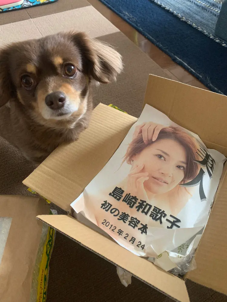 だが「開けたらまずコレ。パコ美もびっくり」と投稿。段ボールを開けると、一番上に「美人 島崎和歌子 初の美容本」の“宣伝広告”があり、隣にはビックリした表情のような愛犬も写っていた。