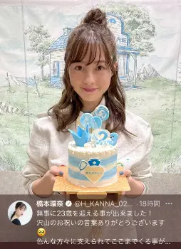 今月3日に23歳の誕生日を迎えた橋本。「無事に23歳を迎える事が出来ました!」と報告。「沢山のお祝いの言葉ありがとうございます。色んな方々に支えられてここまでくる事が出来ました。初心を忘れず、周りの方に誠実に向き合い、恩返しをしていければと思っております。今後も皆さんよろしくお願いします」とつづり、23とデコレーションされたバースデーケーキを持ったショットをアップした。