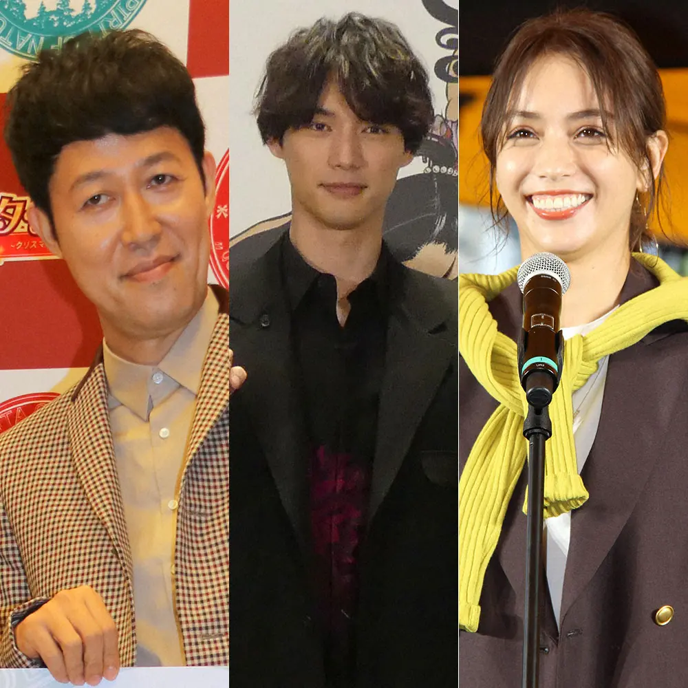 4日に新型コロナウイルスに感染したことが報告された(左から)小籔千豊、福士蒼汰、滝沢カレン