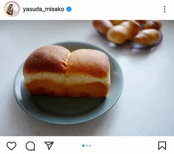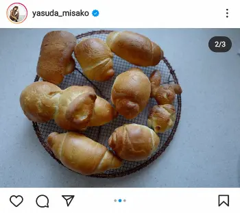「パン作りました 発酵はいまいちだったけど、焼き色がいいかんじ」とつづり、手作りした食パンやロールパンなど、さまざまな形のパンの写真をアップ。ハッシュタグで「bread」「みさこクッキング」「食パン」「ロールパン」などと添えた。