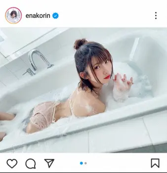 「お風呂」と記すと、泡風呂入浴ショットを披露。下着姿で、顔や背中、お尻部分をのぞかせたセクシーなショットとなっている。前投稿では「おはよ」とつづって浴槽に腰かけたショットをアップしていた。