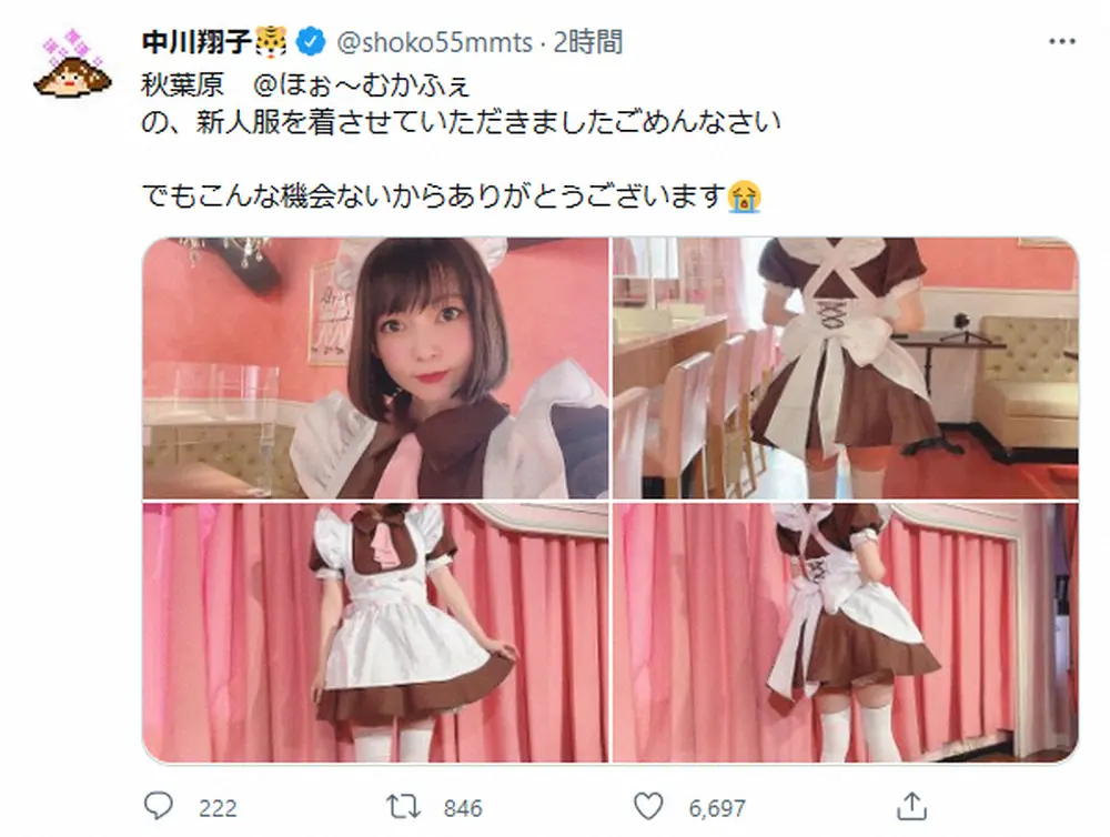 中川翔子ツイッター(@shoko55mmts)から 中川翔子 アキバのカフェでメイド服姿披露に「可愛すぎ」「萌え萌えキュ… ギャラリーで見る この記事のフォト 2022年02月08日の画像一覧 もっと見る 2022年02月08日の画像をもっと見る