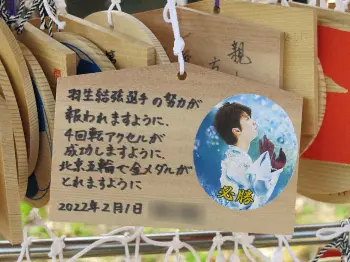 神戸市の吉川御珠さん(72)、美和さん(50)親子も「有言実行の結弦さんだから4A(4回転半ジャンプ)も成功させてくれると信じてます」と語り、絵馬にも祈願した。