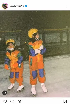 「初めてスケートリンクへ遊びに行った日」とつづり、白いスケート靴にお揃いのウェアとヘルメット姿の写真を投稿。以前に舞は7歳、真央さんが5歳の時にスケートを始めたと明かしており、その時の写真のようだ。