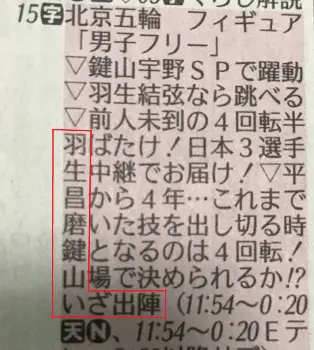 フィギュア男子フリー NHKラテ欄縦読み「羽生昌磨鍵山 いざ出陣」が話題 ファンも声援「頑張って」