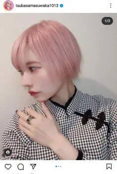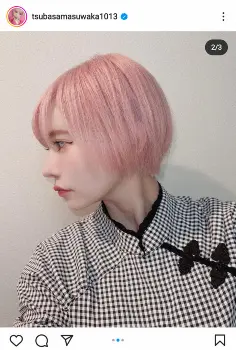 益若は襟足を短くしたきれいなピンクの髪をした横顔の写真を投稿し「髪の毛襟足過去1短いです。ボールをイメージしてます」とつづった。