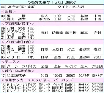 各界に5冠 囲碁では張九段と井山棋聖、スポーツ界ではオリックス・由伸ら