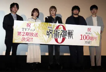 アニメ映画「劇場版 呪術廻戦0」の興収100億円突破記念舞台あいさつに出席した(左から)榎木淳弥、花澤香菜、緒方恵美、中村悠一、櫻井孝宏 Photo by スポニチ 劇場版「呪術廻戦」興収100億円突破!テレビアニメシリーズ第2期制作決定… ギャラリーで見る この記事のフォト 2022年02月13日の画像一覧 もっと見る 2022年02月13日の画像をもっと見る
