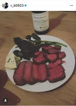 さらに、夜には「#妻からのバレンタイン」「#バレンタインローストビーフ」「#バレンタインワイン」「#毎日感謝」「#幸せな時間をありがとう」と記し、奥菜手作りのローストビーフとワインが置かれた写真を披露した。