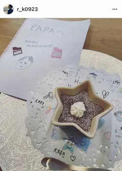 「お仕事前に頂きました 今年は手作りフォンダンショコラ。甘くて暖かくて美味しい。今日もお仕事頑張れそうです」と「PAPAへ HAPPY Valentaines」「大好き」というメッセージとともに星型のフォンダンショコラの写真をアップ。「#ハッピーバレンタイン」「#子供達に」「#妻に」「#感謝」と添えた。