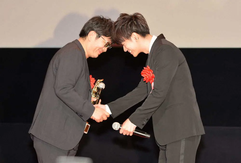 男優主演賞の佐藤も、大友監督の祝福のため登壇した。「我々が頑張った日々が報われましたね。スタッフも共演者の皆さんも喜んでいると思います。皆さんの愛を感じました。しっかりと受け取りましたので、原動力として今後も精進したいと思います」と、しゃれたメッセージで感謝した。
