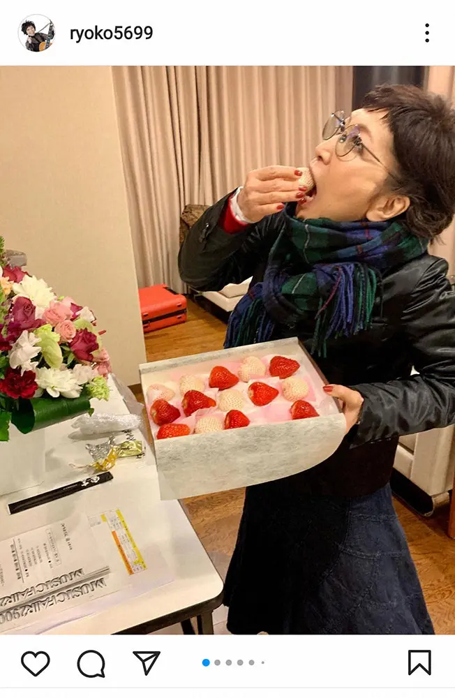 歌手の森山良子(74)が18日、自身のインスタグラムを更新し、music fairに出演し、豪華な紅白のイチゴとおいしい弁当をもらったことを報告した。