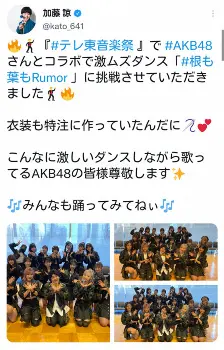 加藤諒 特注衣装でAKB48の激ムズダンス共演を報告「AKB48の皆様尊敬します」