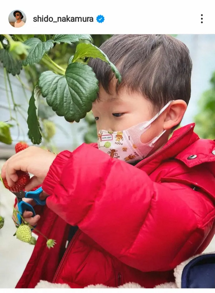 歌舞伎俳優の中村獅童(49)が24日までに自身のインスタグラムを更新。いちご狩りをする長男・陽喜(はるき)君(4)の姿を公開した。