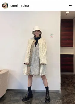 2枚目と3枚目はアウターを着たもので、アウターもハットも白で統一しており、「アウターはリバーシブルで着られる優秀な@unitedarrows_officialのもの。バケハは形も可愛い上に折りたたんで持ち運べるので白黒両方持ってます」と記した。
